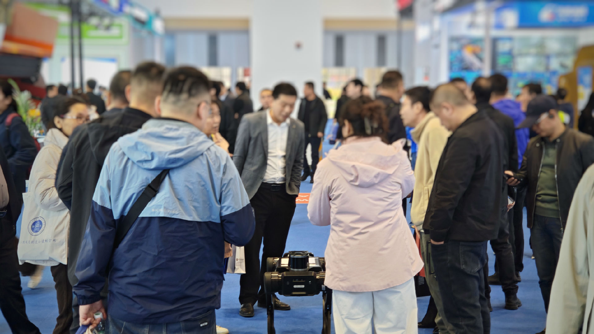 展臺上,四足智能巡檢機器人憑借精準靈活的運動(dòng)性能和環(huán)境識別能力,引來(lái)觀(guān)眾圍觀(guān)與互動(dòng),成為首日展會(huì )的“人氣擔當”。