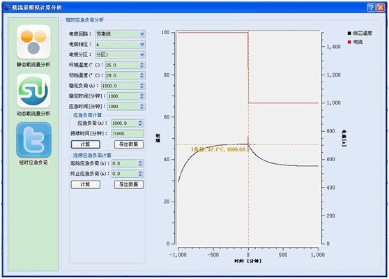 3. 動(dòng)態(tài)載流量評估:預測在未來(lái)一段時(shí)間內,加載任意變化負荷電流時(shí)芯線(xiàn)溫度的變化情況,為電纜動(dòng)態(tài)增容提供依據。