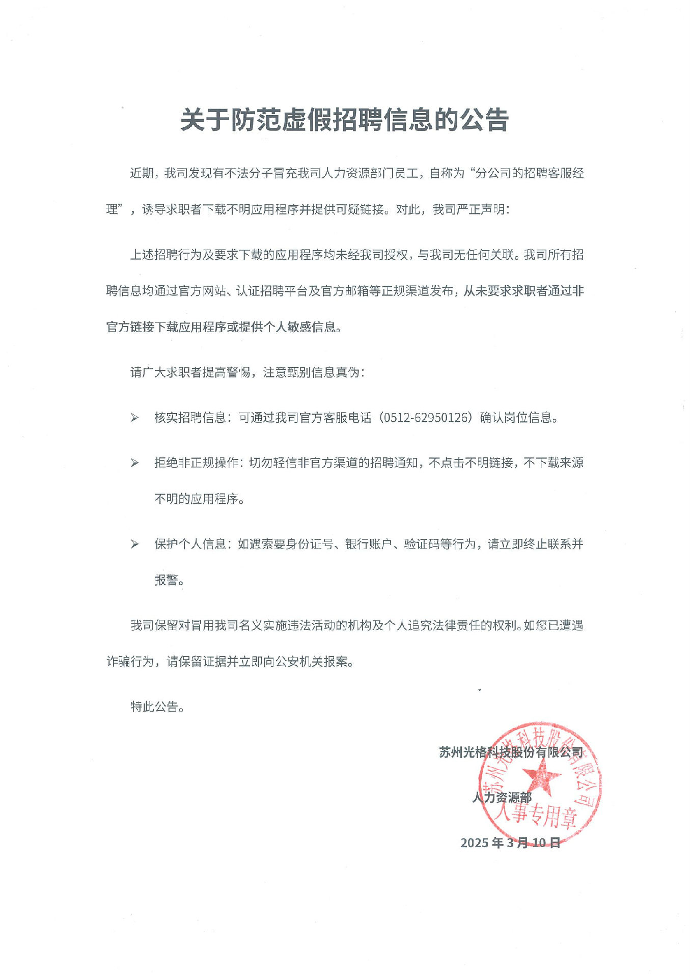 招聘聲明